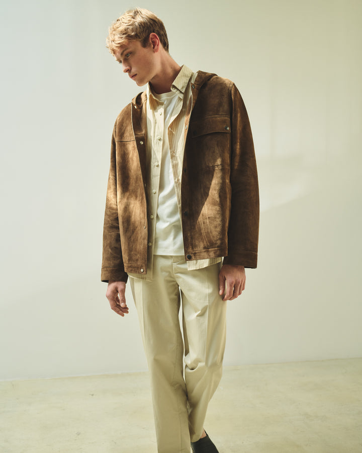 Inspired by classic workwear codes, our overshirt-style jackets blend functionality with sophistication. Crafted from premium wool-cashmere blends with contrasting textures and smooth leather accents, these versatile pieces can be worn as standalone outerwear or layered under coats for additional warmth during transitional seasons.