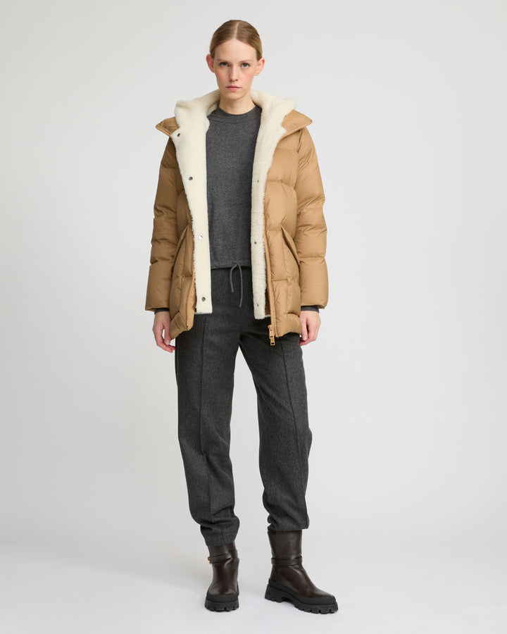 Choose from a wide selection of warm winter coats, in shearling, reversible in Lacon lamb, Tuscany lamb, or curly merino lamb. To complement your coat with your everyday looks, choose from our range of solid or iridescent colors or opt for leopard print patterns. Wrap yourself in comforting and luxurious materials to brave the cold, and opt for an ultra-light down parka, or a shearling merinillo pea coat or perfecto.