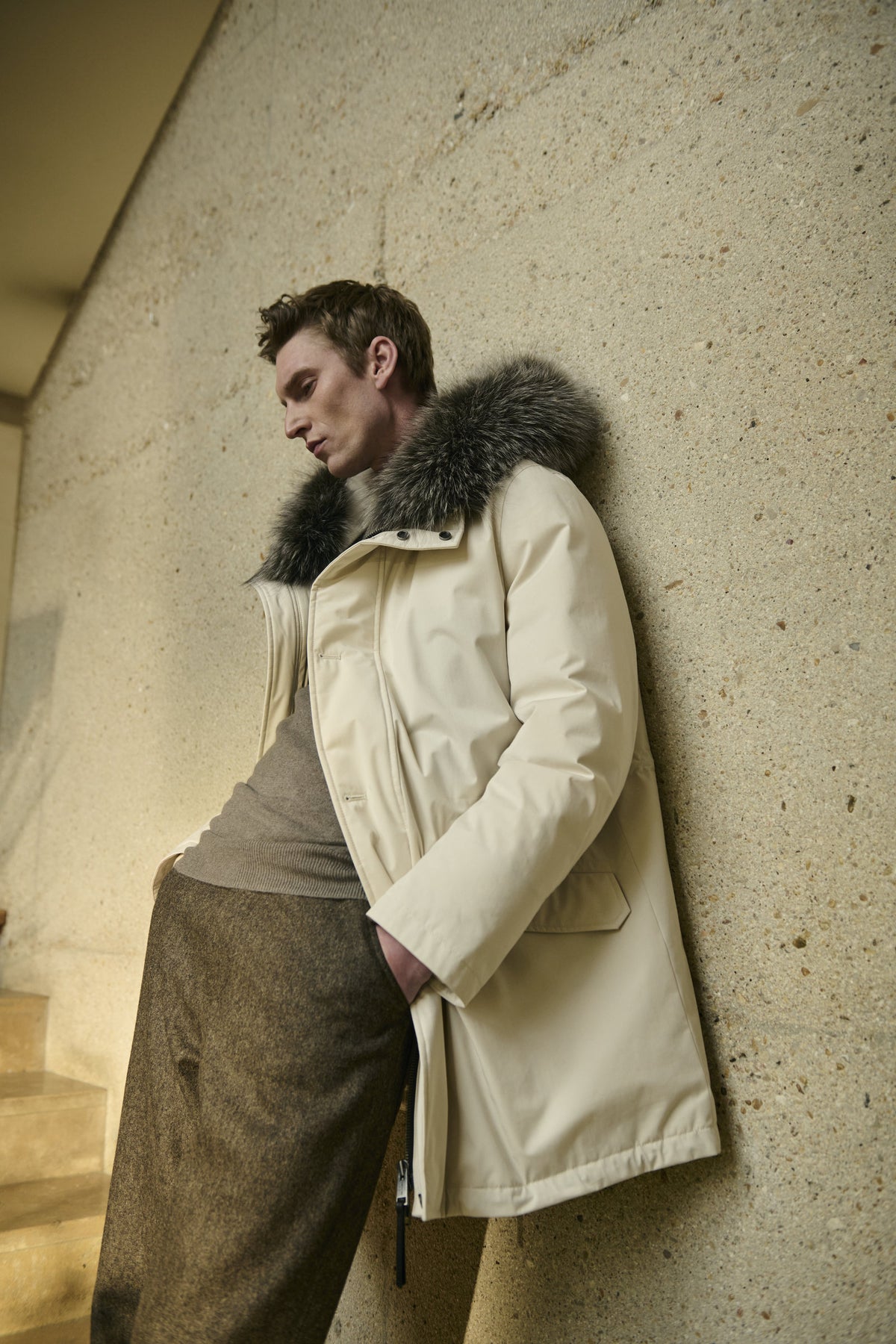 When temperatures drop, our winter collection delivers uncompromising warmth through premium insulation. Cashmere wool and shearling linings create a luxurious cocoon of comfort while maintaining a refined aesthetic. The structured silhouette of our long overcoats offers protection against harsh elements without sacrificing elegance.