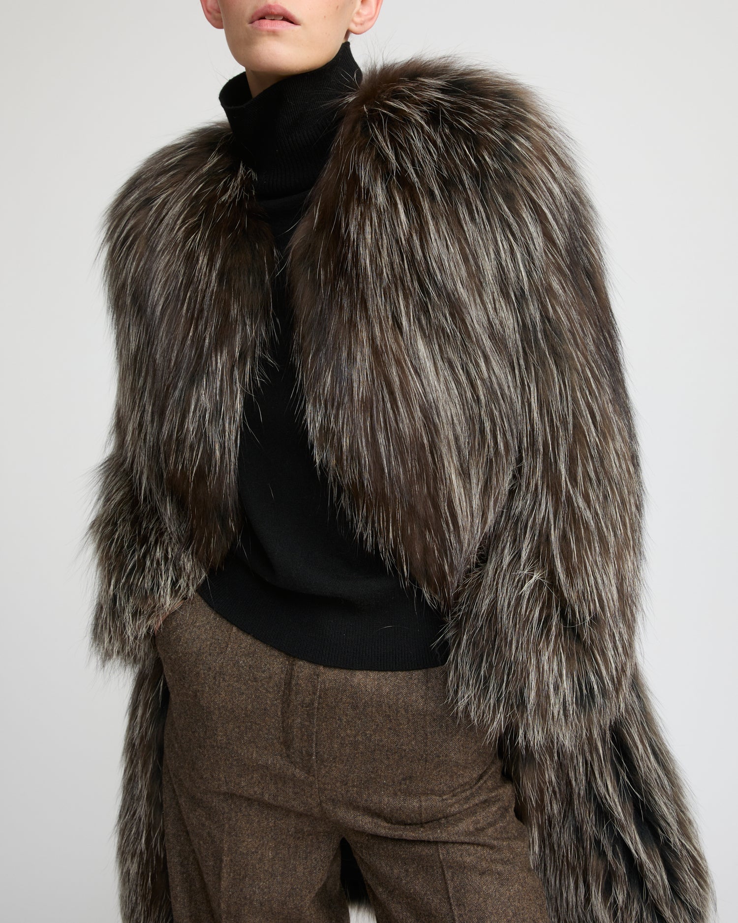 Fox pelts are generous, voluminous, and remarkably dense. They lend themselves equally well to statement pieces and opulent details: collars, hoods, trims, parka linings, or garments crafted entirely from fur.