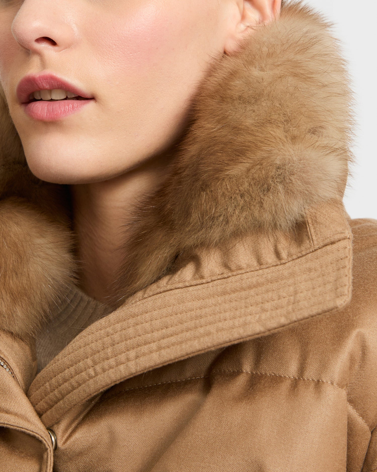 At Yves Salomon, we are proud to feature iconic outerwear rendered in Loro Piana fabric treated with the Green Storm System®—a pinnacle of Italian textile innovation and environmental responsibility. This advanced fabric graces several women’s and men’s jackets and parkas within our Iconics collection, blending couture elegance with weatherproof functionality.