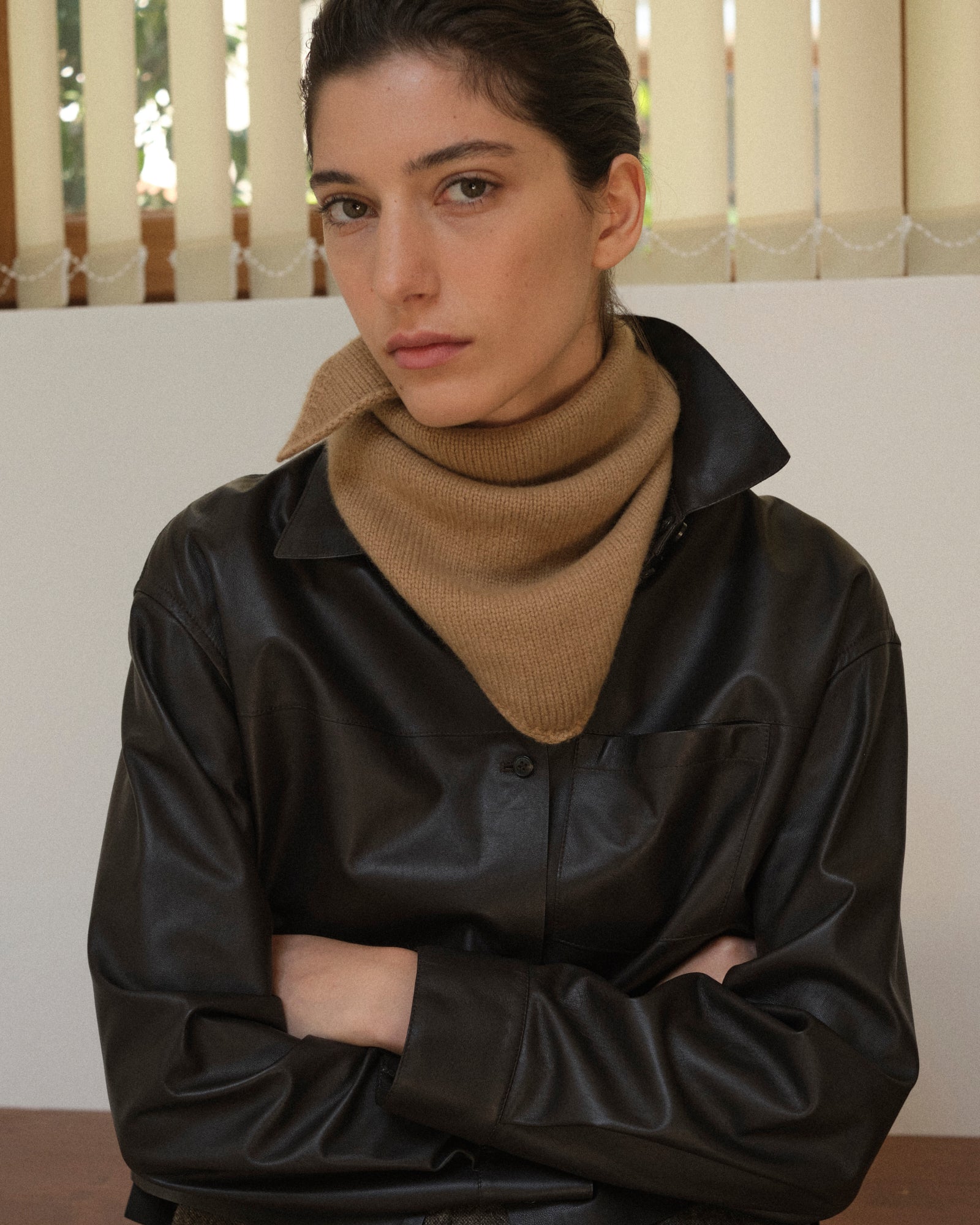 A bandana shape for this versatile triangular scarf, which knots at the neck to finish off all winter outfits. Soft 100% cashmere knit.