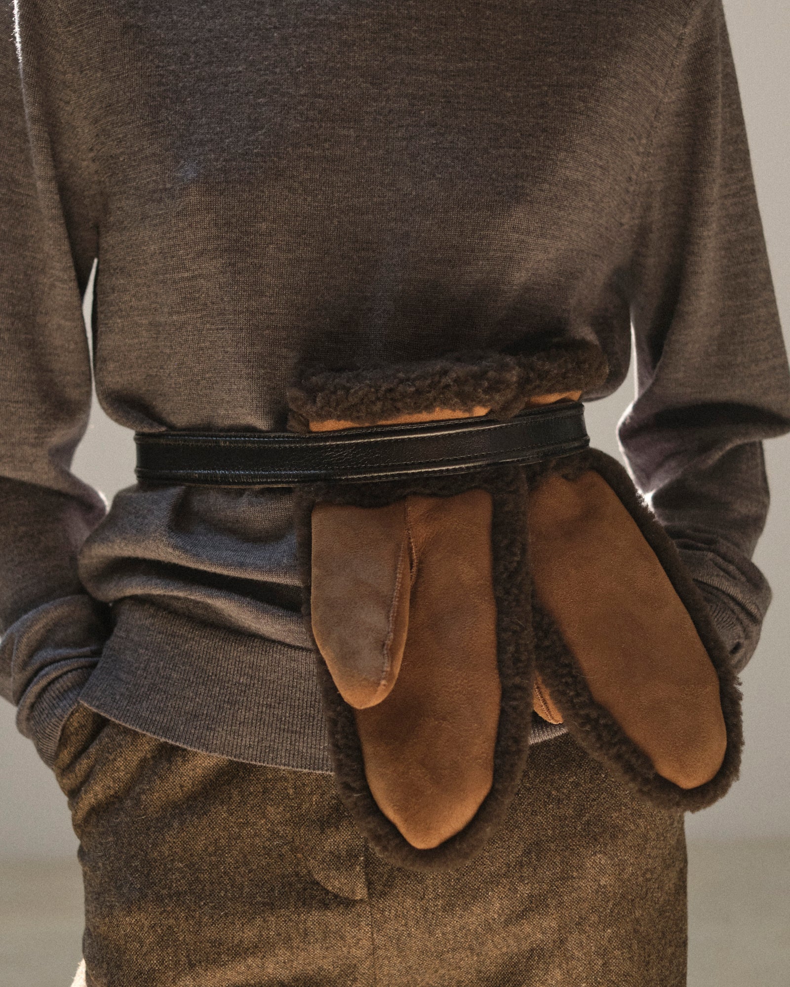 A must-have for chilly hands, these mittens in curly Merino shearling provide stylish protection and warmth.
