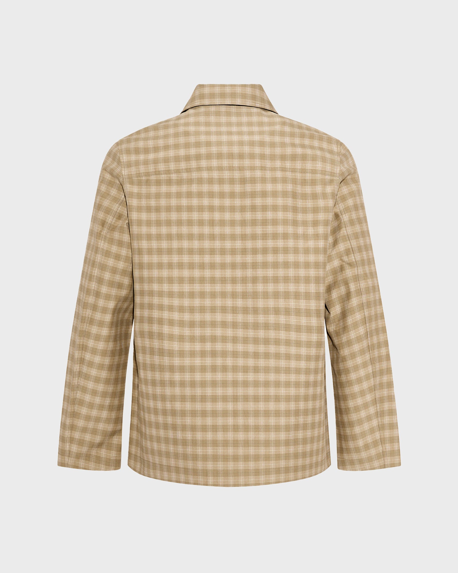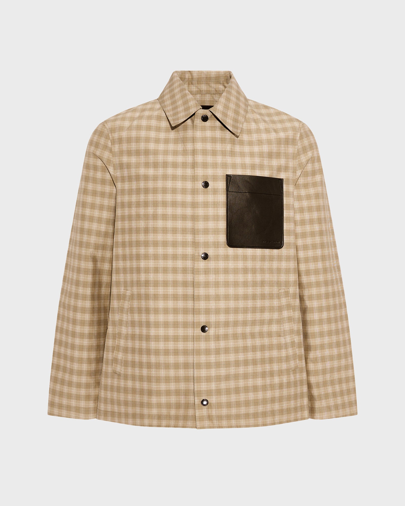 To be worn over a t-shirt or sweater, this overshirt combines elegance and functionality with its double-sided fabric treated with a water-resistant finish. The check print material is combined with lambskin leather details, including a chest patch pocket and inner logo.