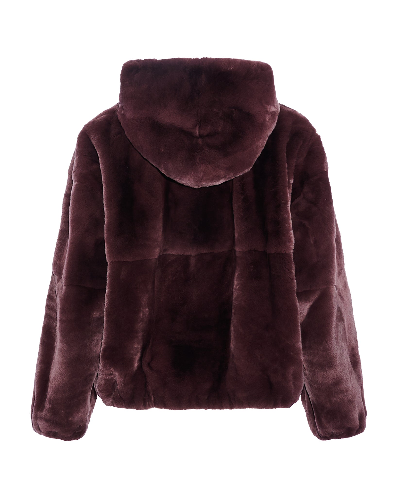 Hooded jacket in technical fabric reversible rex rabbit fur