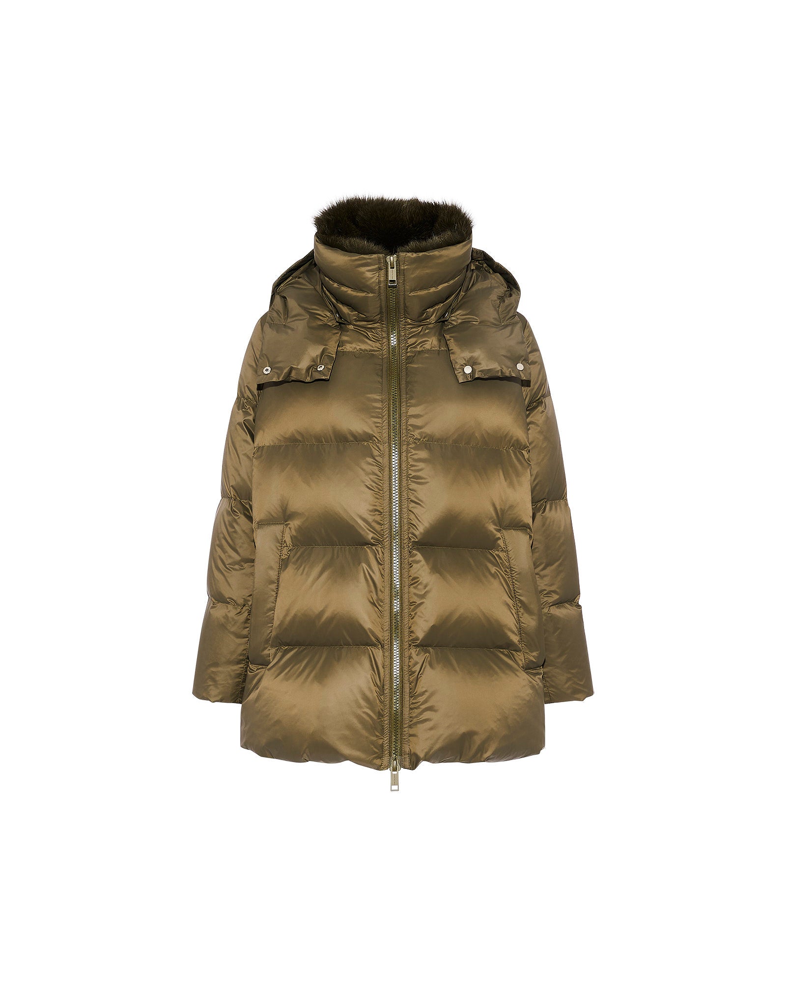 Crafted from water-repellent technical fabric, this iconic "A" line down jacket is padded with high-quality down and duck feathers for warmth and breathability. Design details include a front zip fastening, two welt pockets and invisible technical ribbed finishes at the bottom sleeves. Functional and lightweight at the same time, this model has side zip slits for extra ease and a touch of modernity. Featuring a detachable hood and a removable collar trim in natural-dyed fox, this versatile down jacket combines comfort with elegance.