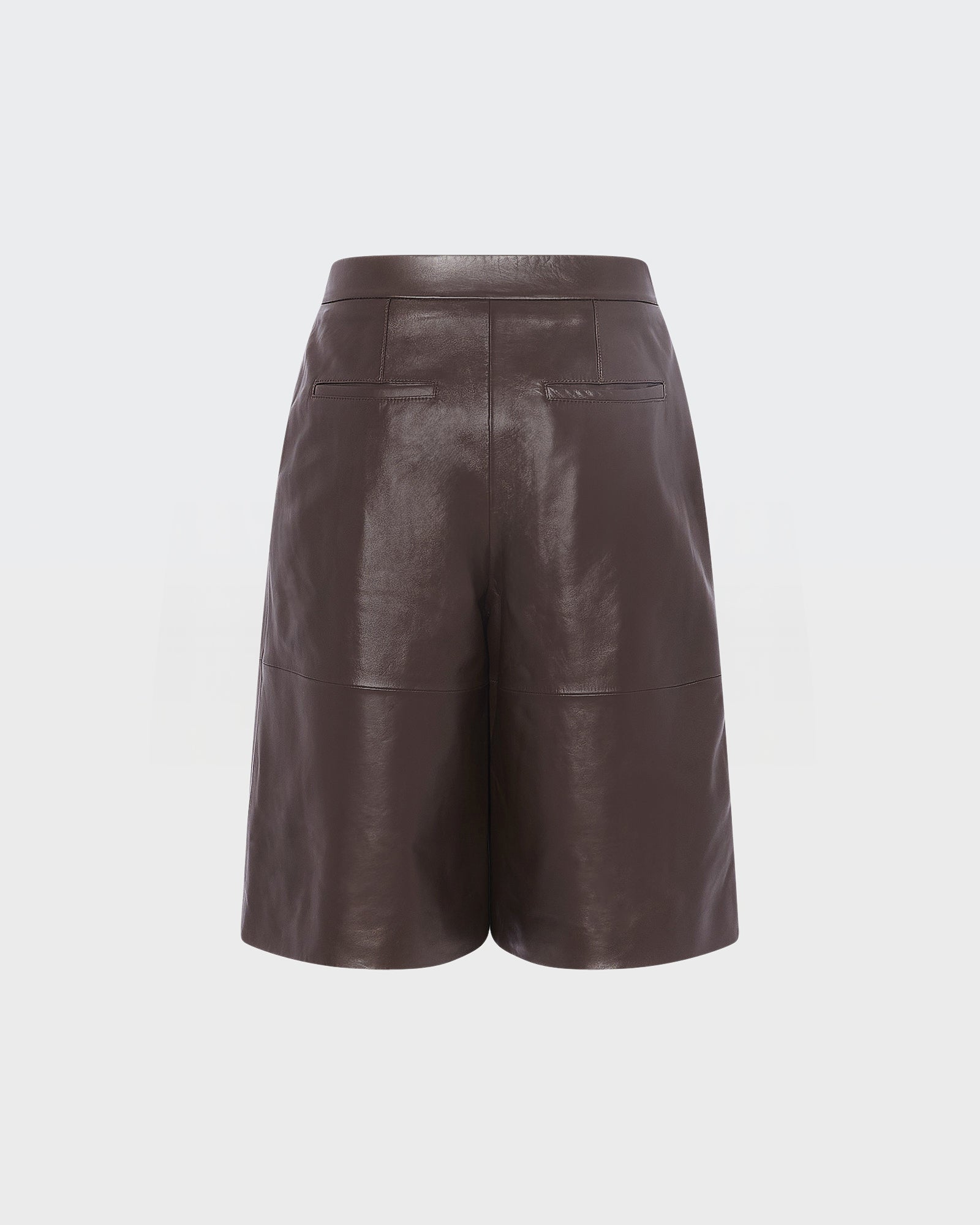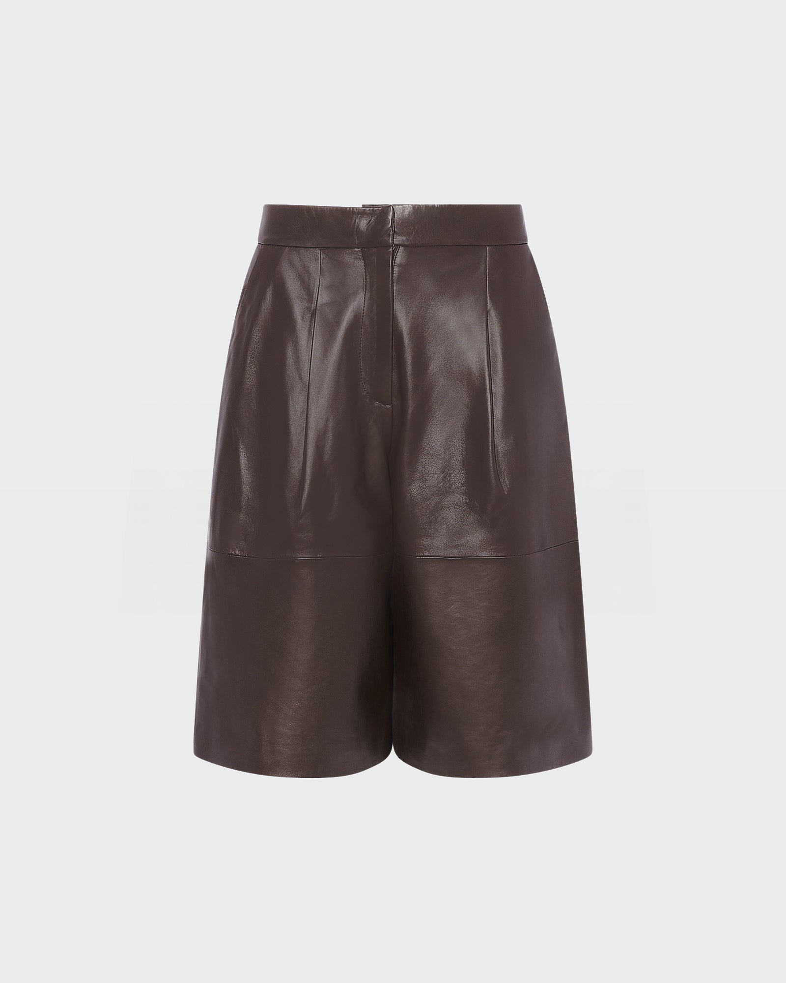 The elegance of generous, clean lines for these bermuda shorts worked in soft, smooth lambskin, with a perfect fall.