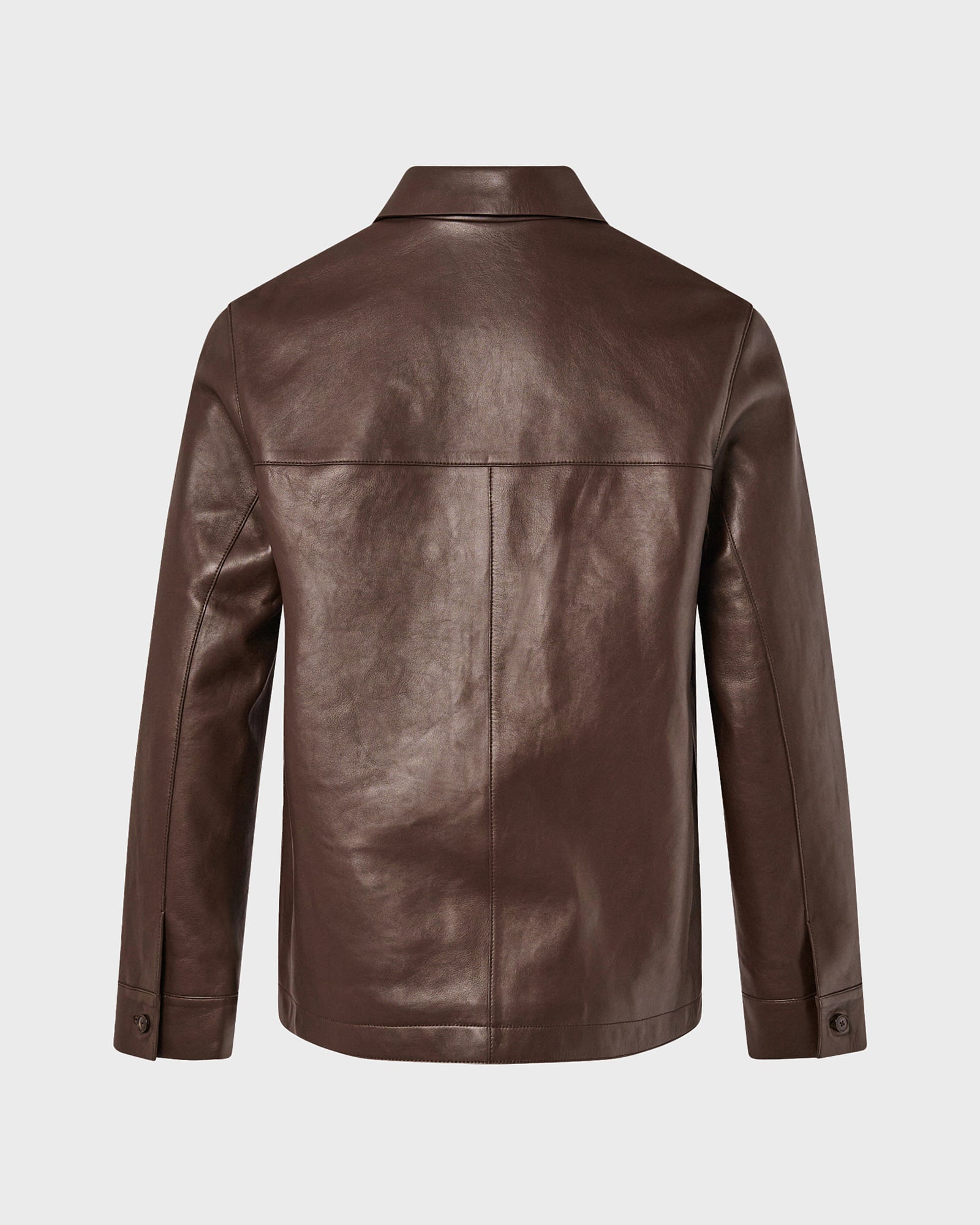This classic jacket is crafted from a lambskin leather selected for its handfeel combining flexibility and density, giving the design a perfect hang. Its shirt collar and button fastening add to the timeless appeal of the garment.