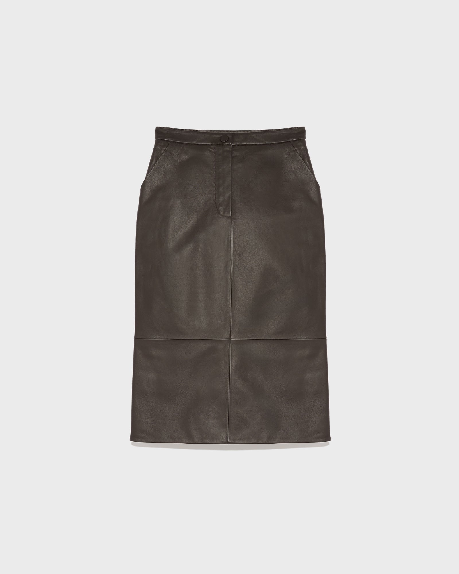 The pencil shape, zip fastening and rear slit of this skirt create a classic shape, twisted by the sophistication of smooth lambskin.