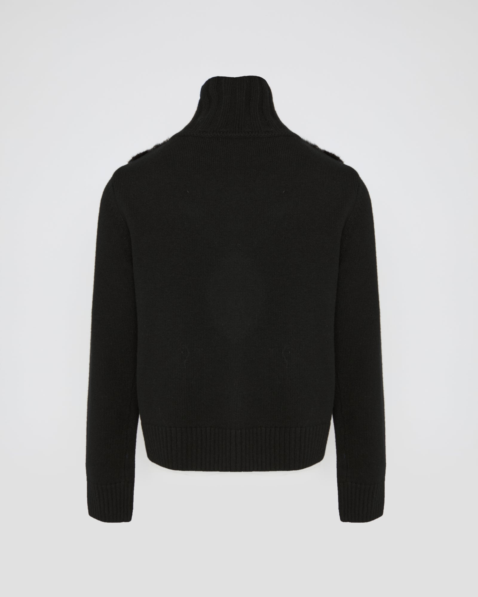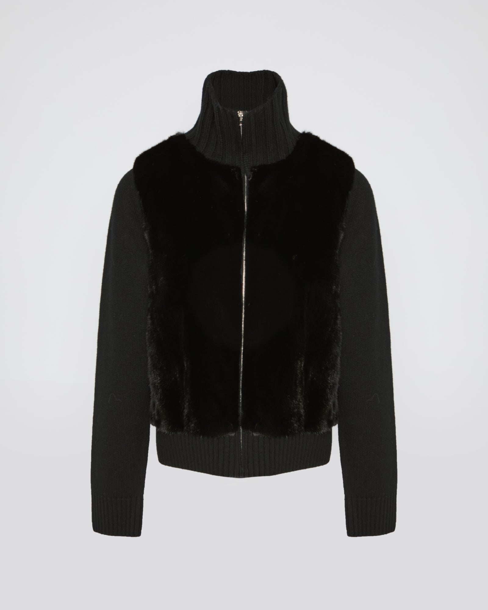 The clever, impeccably assembled combination of luxurious, long-haired mink fur and Merino knit. The front and back are in fur, with the sleeves and hem worked in knit, in a perfectly-crafted piece which highlights the Yves Salomon expertise.