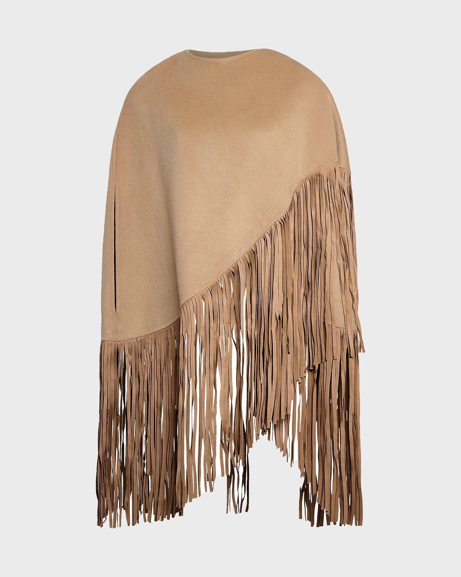 Short asymmetrical cape in cashmere-blend with fringes