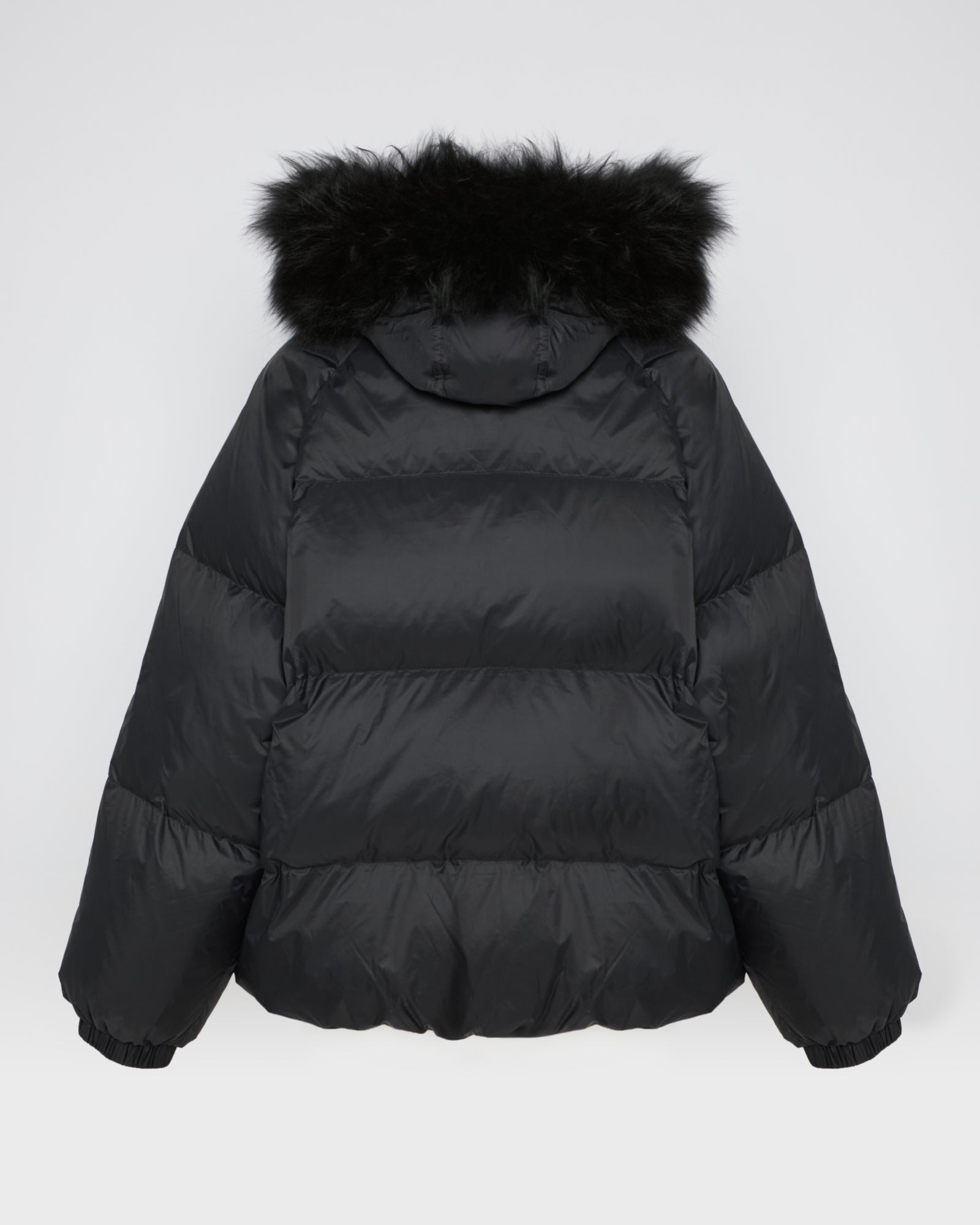 Short down jacket with fluffy lambswool trim.