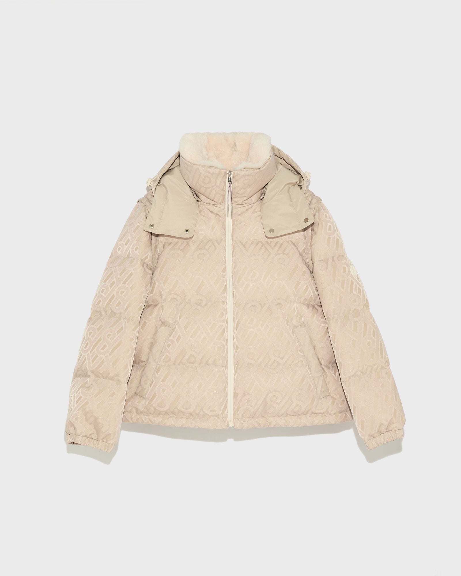 With its technical fabric featuring shiny monogram effect jacquard print, this short down jacket combines style and performance to face the pistes. Highest quality down filling and a removable mink collar trim provide warmth and luxury. The sleeves can be unzipped to transform the garment into a hooded gilet. Inner ribbing and aquazips provide protection against the elements. This garment is equipped with the RECCO system which alerts rescuers to your location in case of an avalanche.