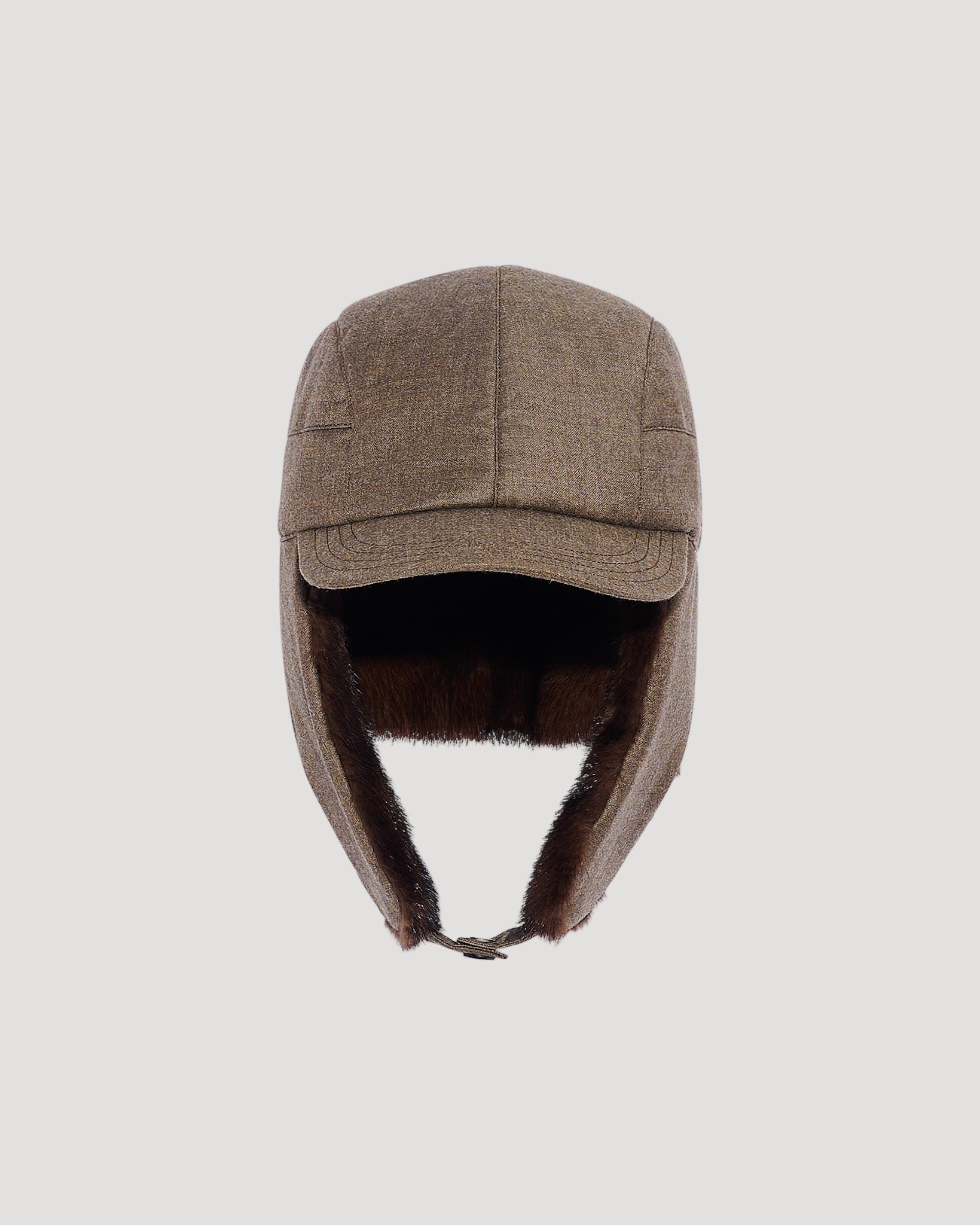 A hybrid design combining the baseball cap and the ushanka, this elegant hat ensures perfect protection down to -10°C. The combination of soft, resistant mink fur and a Loro Piana fabric which uses the Storm System technique, ensures absolute protection against the elements.